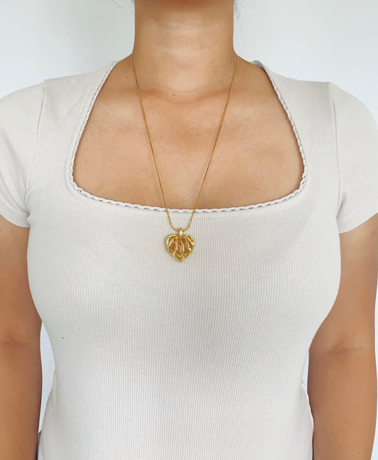 Vintage Caged Puffy Heart Pendant Necklace