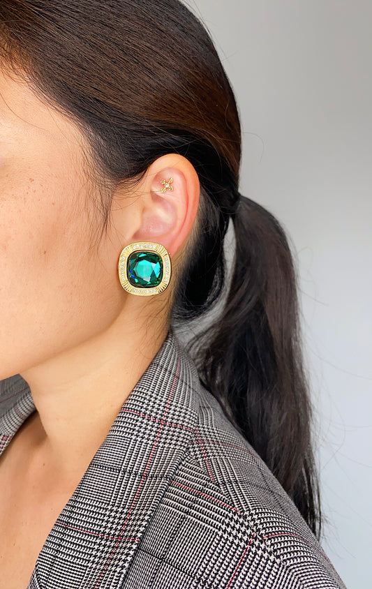 Vintage Swarovski Cushion-Cut Emerald Crystal Clip Earrings