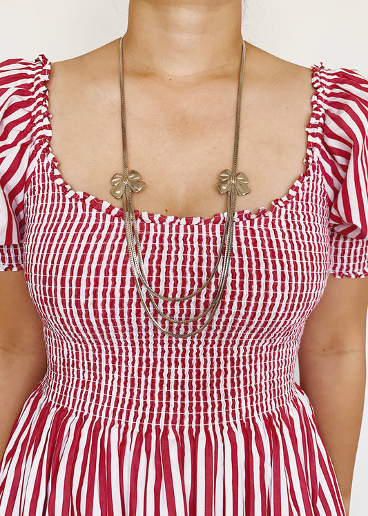 Vintage Silver Triple Herringbone Chain Necklace with Bow Stations