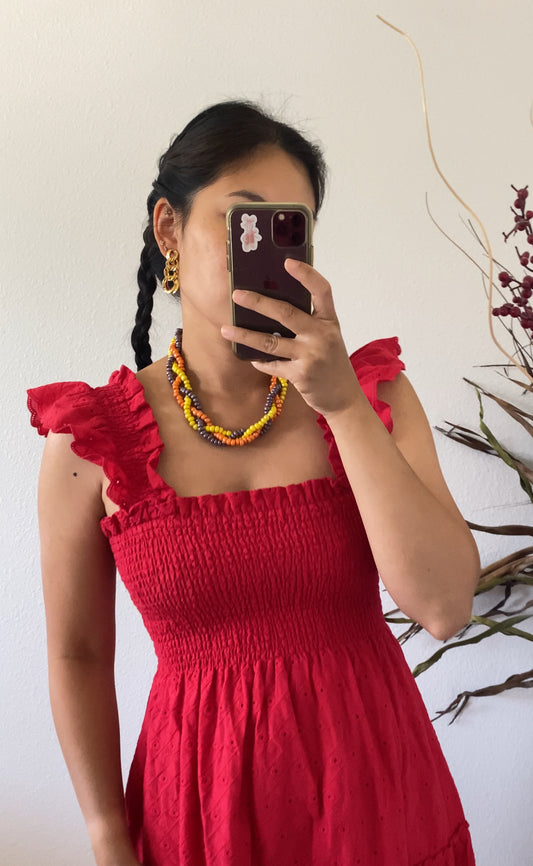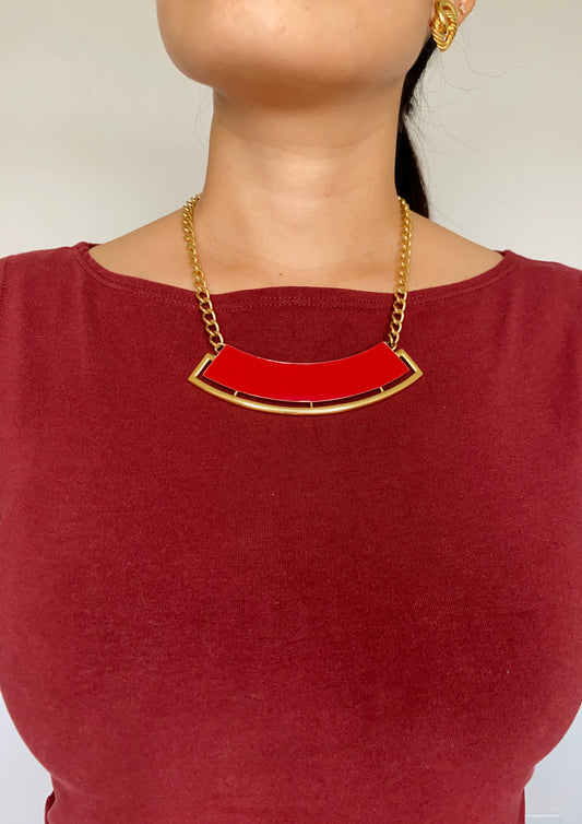 Vintage Monet Abstract Red Enamel Necklace