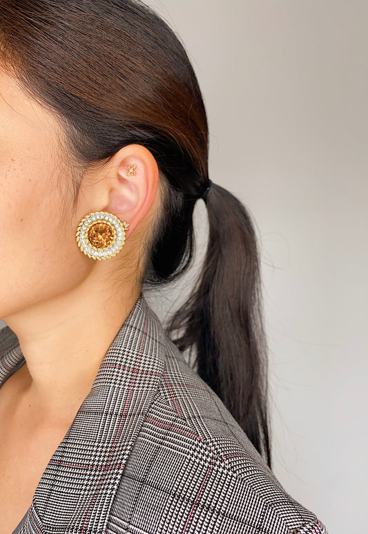 Vintage Swarovski Round Amber Clip Earrings
