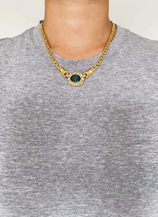 Vintage Sapphire Crystal Oval Pendant Necklace