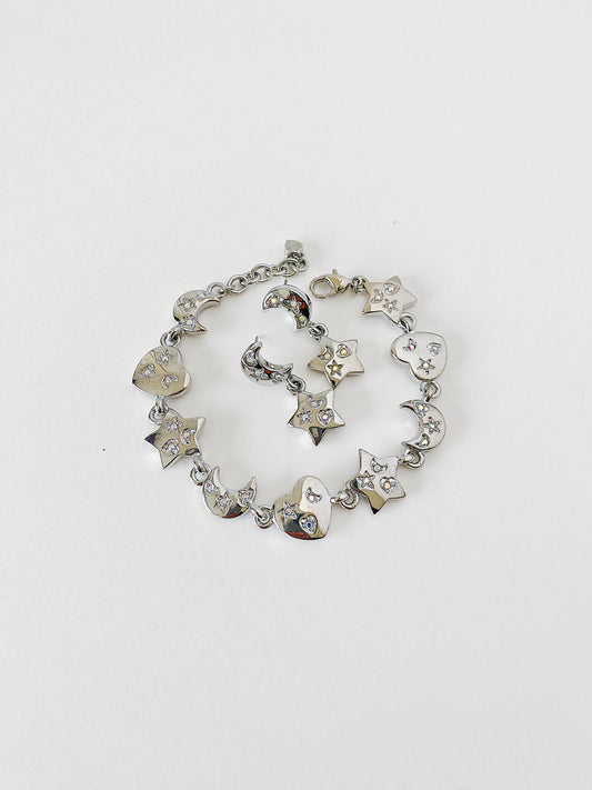 Vintage Kirks Folly Moon & Stars Bracelet Aurora Borealis Rhinestone