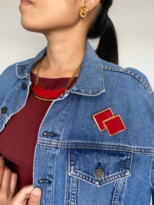 Vintage Monet Abstract Red Enamel Brooch